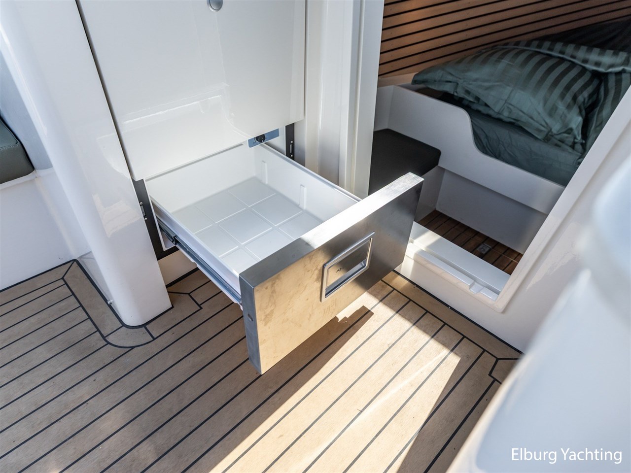 Elektrisch neerklapbare achterplecht met geïntegreerde zwemtrap,