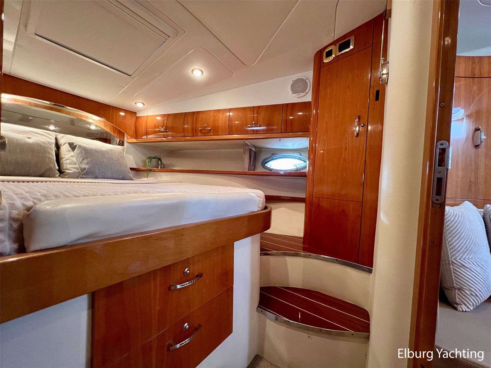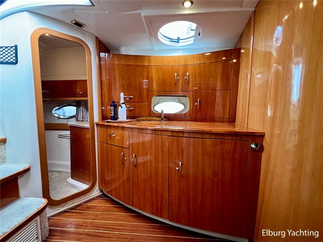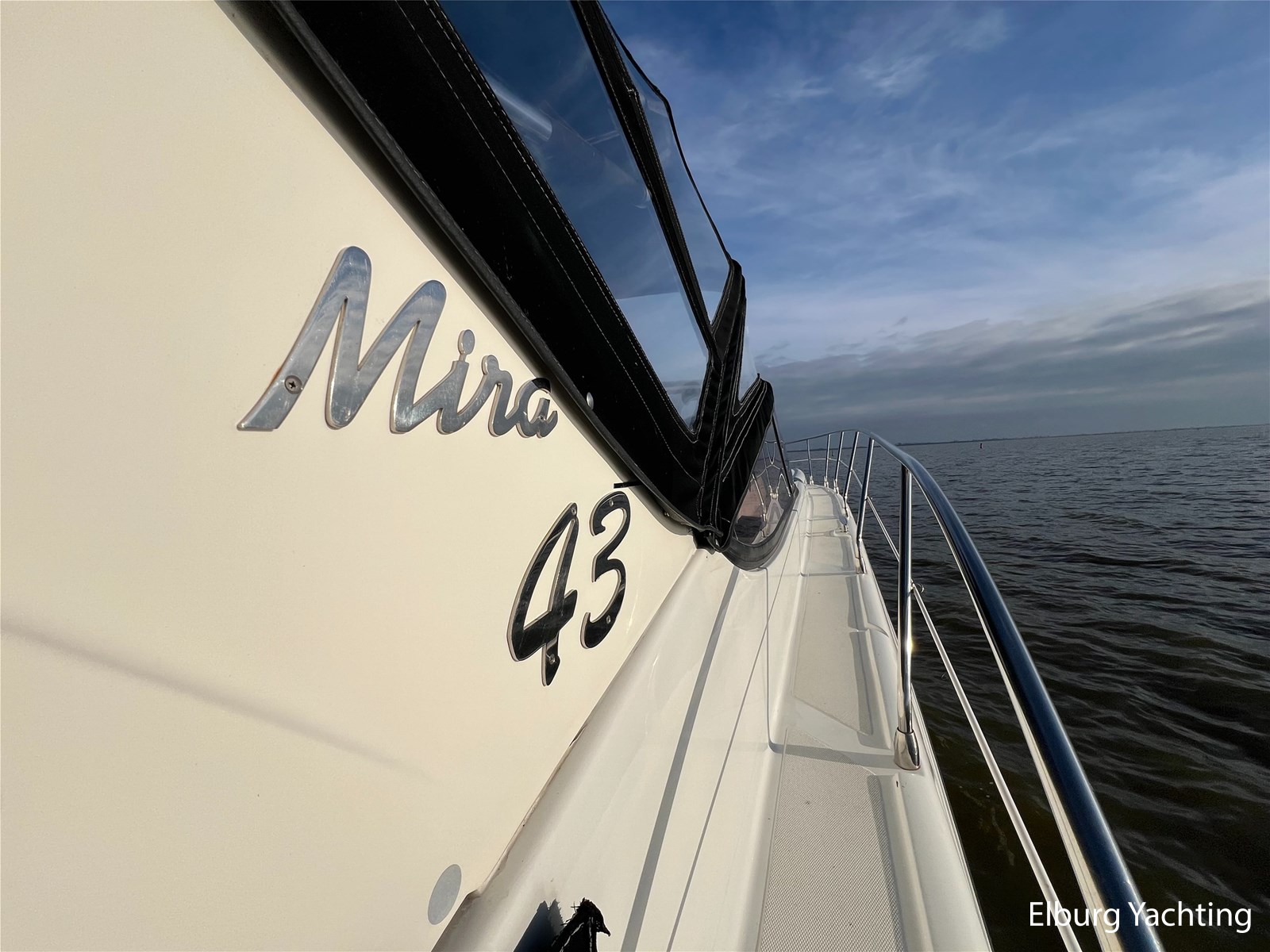 Italiaans design in combinatie met veel praktische ruimte kenmerkt deze Mira 43 van de werf Innovazione e Progetti uit Italie. Dit jacht is van bouwjaar 2004 en is voorzien van twee krachtige Volvo Penta D6 motoren met elk 350 pk. De aandrijving verloopt via twee Volvo Penta DPH hekdrives, welke in 2025 zijn geserviced. Deze Mira 43 is voorzien van: Volledige tent rondom kuip met uitristbare delen, hydraulisch uitschuifbare gangway met afstandsbediening, groot bergluik in zwemplateau, kuip voorzien van koelkast / spoelkom / radio met speakers, loop naar het voordek via gangboorden maar ook binnendoor via opstap bij stuurstand, afneembaar zonnebed op het voordek, elektrisch/hydraulisch bedienbaar luik naar machinekamer, diverse 230V aansluitpunten door de boot, TV in salon (2025), tapijt delen in het interieur uitneembaar, 2 x bergluik in salonvloer. Verfsysteem onderwaterschip vernieuwd in juli 2025. Dit schip is op afspraak in Nederland te bezichtigen. Wij maken graag met u een afspraak voor een vrijblijvend bezoek aan boord.